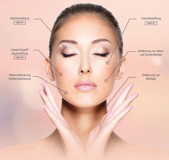 Falten/Fältchen – Pigmentflecken, Hyperpigmentierung/Hypopigmentierung – Altersflecken – Elastizitätsverlust – Großporige Haut – Sonnengeschädigte Haut – Dehnungsstreifen – Narben, z.B. Aknenarben